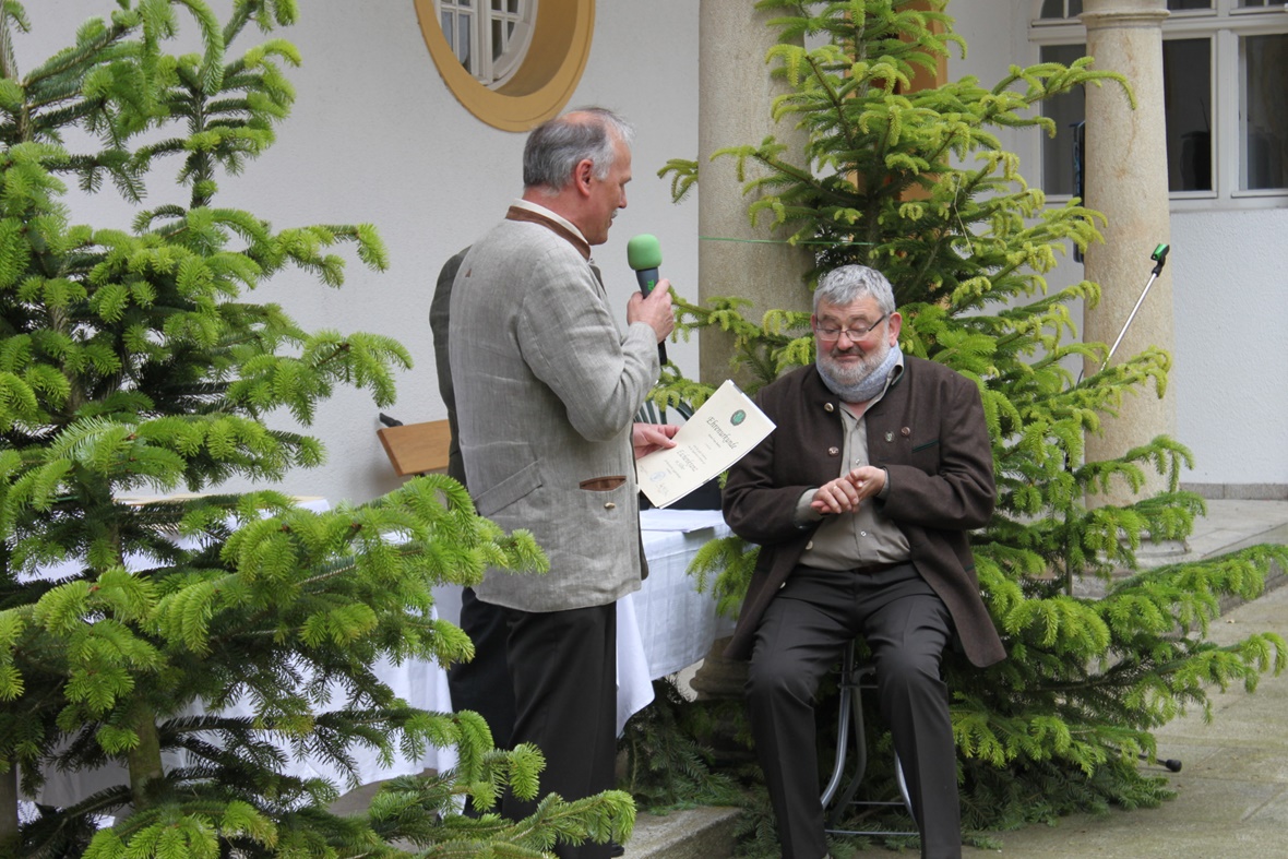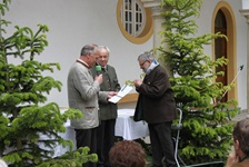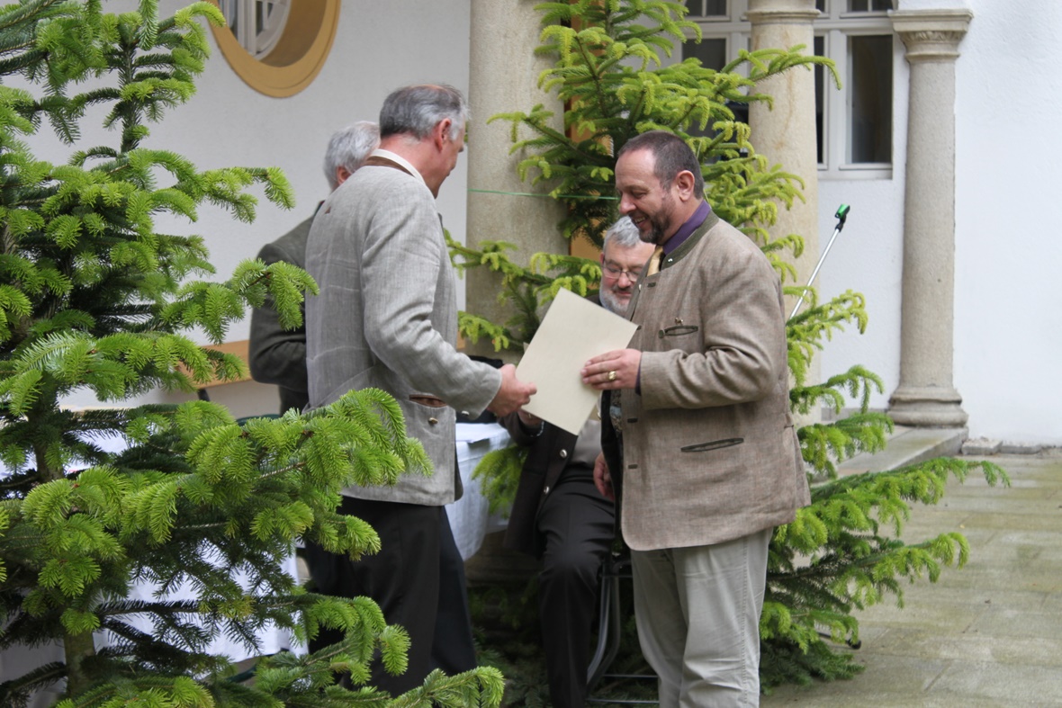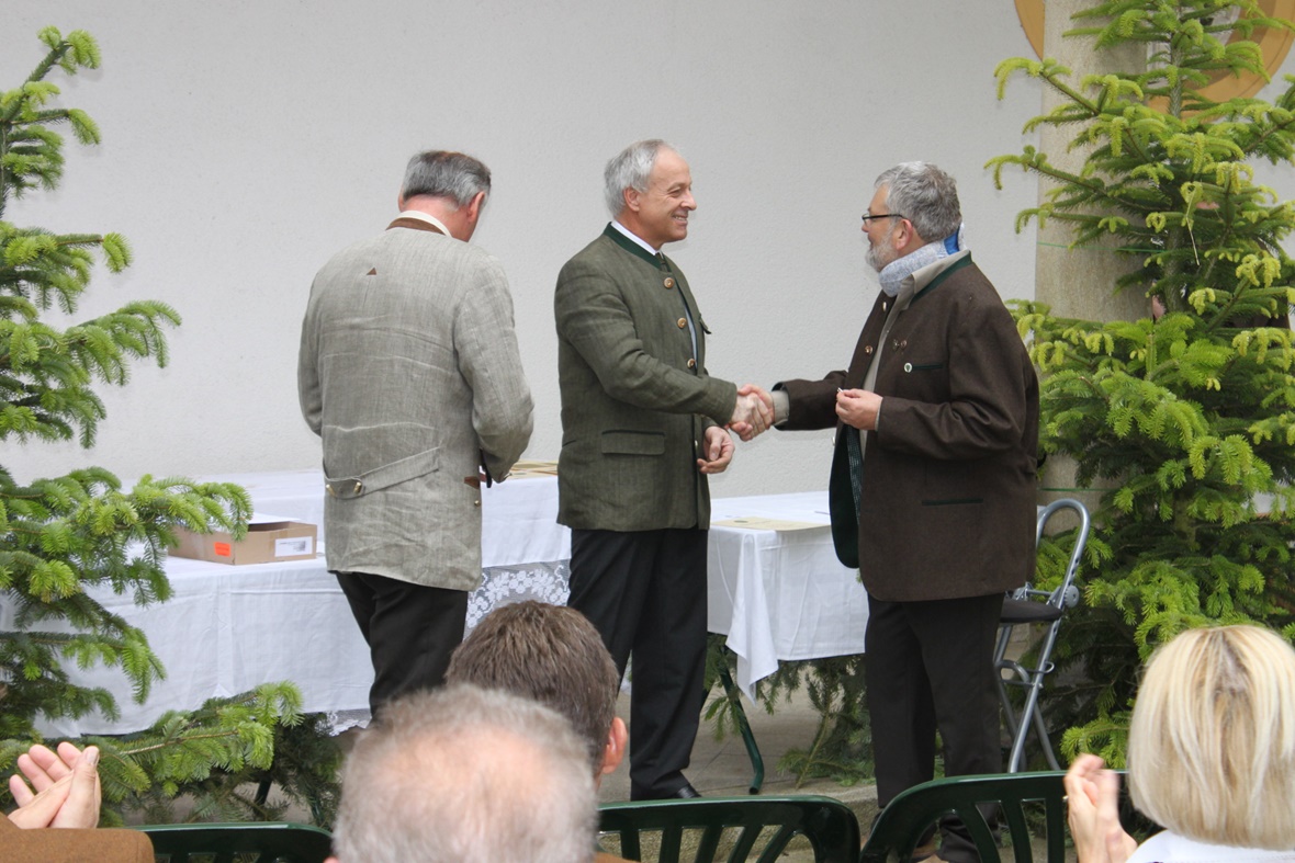 Nach der kirchlichen Feier nahmen der Kreisvorsitzende Reinhard Winnerl, der zweite Vorsitzende Helmut Vaith und der Geschäftsführer Franz Haböck Ehrungen für verdiente Bläser und Mitglieder der Kreisgruppe vor.