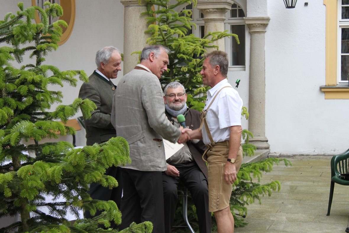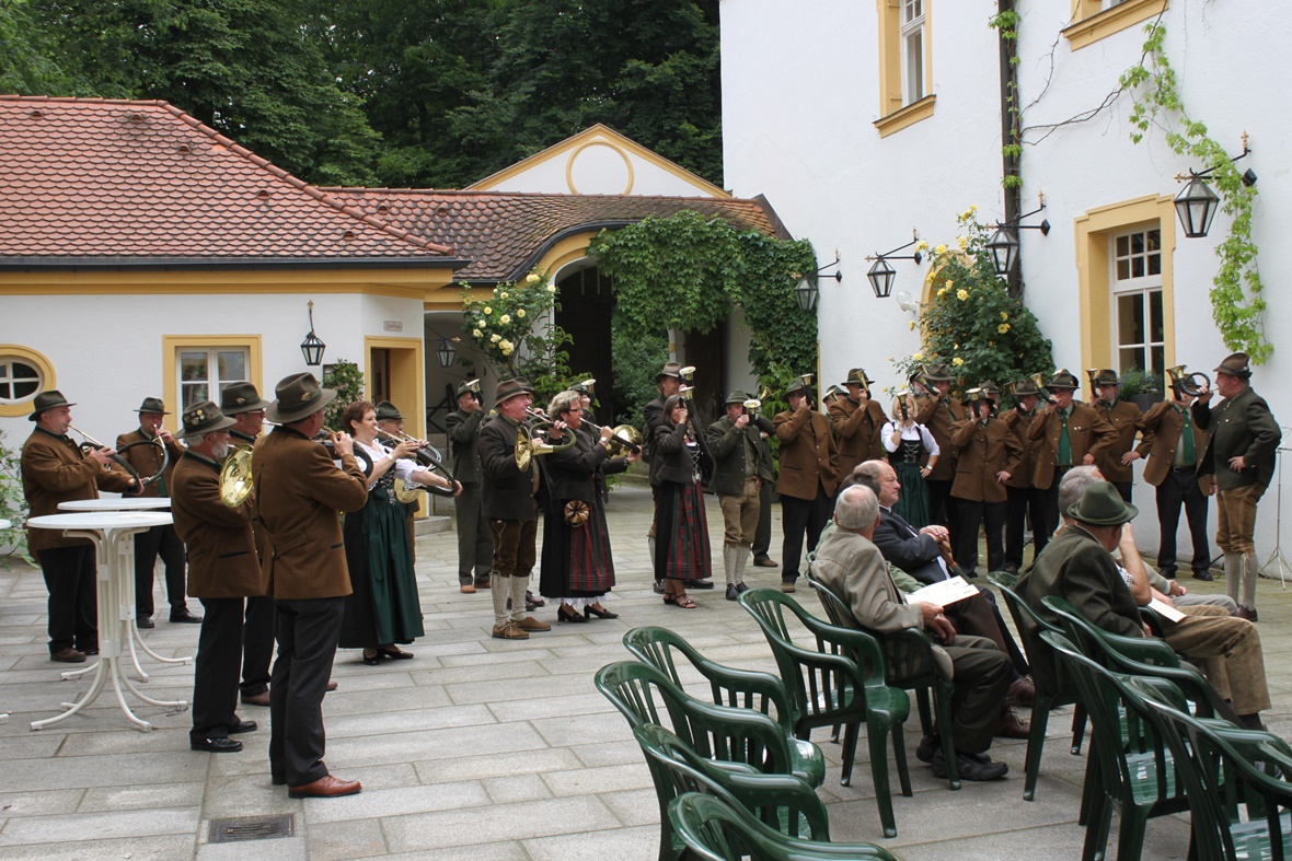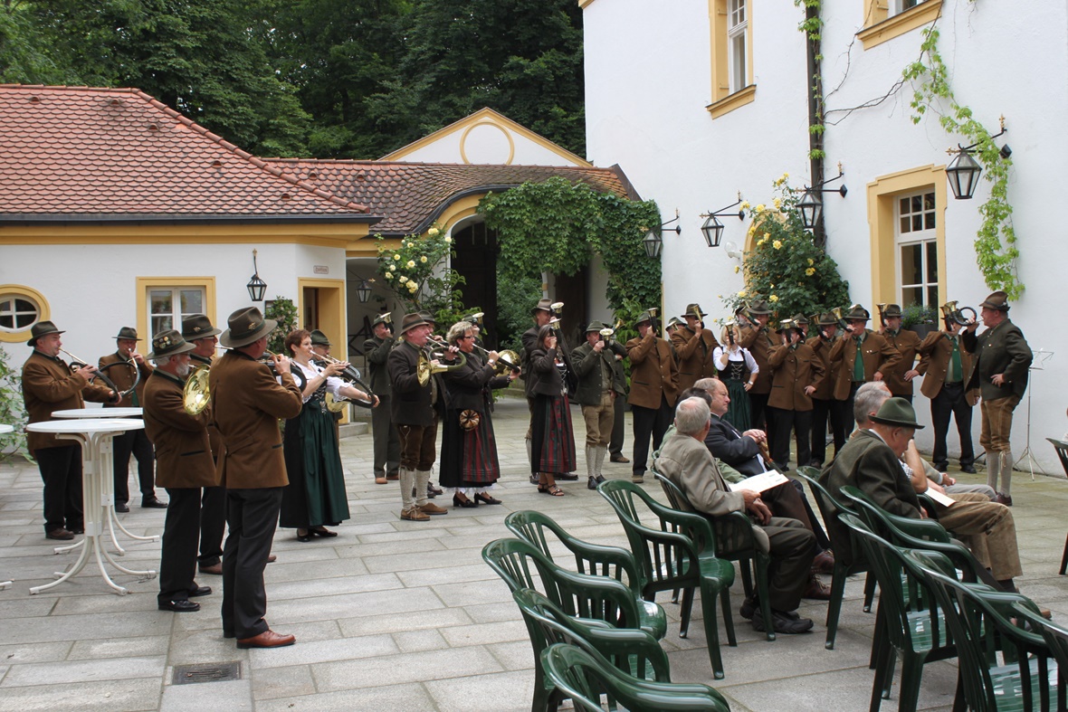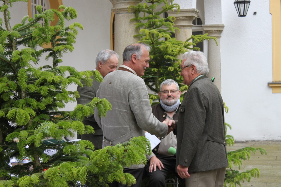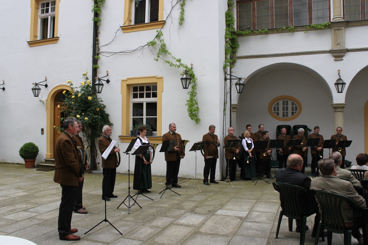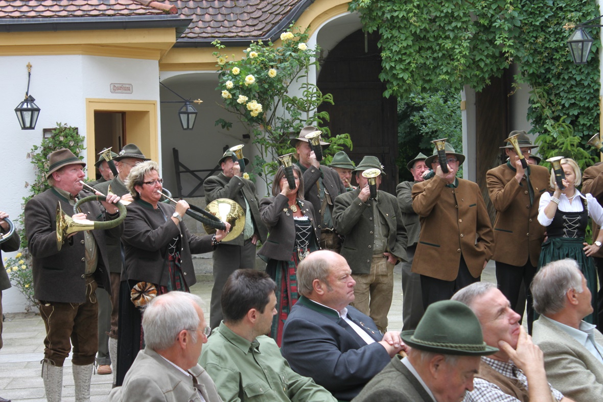 Am 22. Juni fand auf Schloss Offenberg der Bläser - Ehrungstag statt. Das mittelalterliche Schloss bot für diesen Anlass ein herrliches Ambiente. Pfarrer Godehard Wallner zelebrierte den Festgottesdienst, in dem er besonders die Verdienste der Jägerschaft um die Natur, aber auch das soziale Engagement der Jäger herausstellte.