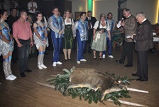 Auch die große Wildtombola mit 450 Preisen ist vom Jägerball nicht mehr wegzudenken. Der Hauptpreis war wieder eine Wildsau, die vom Gräflichen Haus aus Moos gestiftet wurde. Gewinnerin war Silke Hrda aus Plattling. Der Zweite Preis, "Donau in Flammen", ging an Susanne Koller aus Grafling und der dritte Preis, ein Tanzkurs der Tanzschule Loring - Deggendorf, ging an Josef Saller aus Kirchberg. Den Sonderpreis, eine Motivtorte, nahm Barbara Reimer aus Grattersdorf mit nach Hause. Die beiden anderen Sonderpreise der Firma Dictum, gingen an Andreas Seibold (Jagdmesser) und Gertrud Liebl (Jagdbeil).