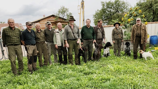 Bild zeigt unsere erfolgreichen Gespanne mit Prüfern, Revierinhabern und Helfer.
