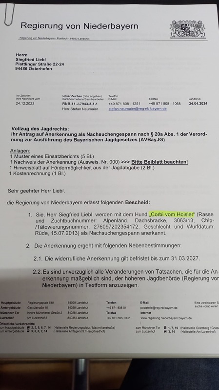 Die KG Deggendorf bietet ab April 2025 wieder einen Hundeführerlehrgang mit anschließender Dressurprüfung und Brachbarkeitsprüfung an.